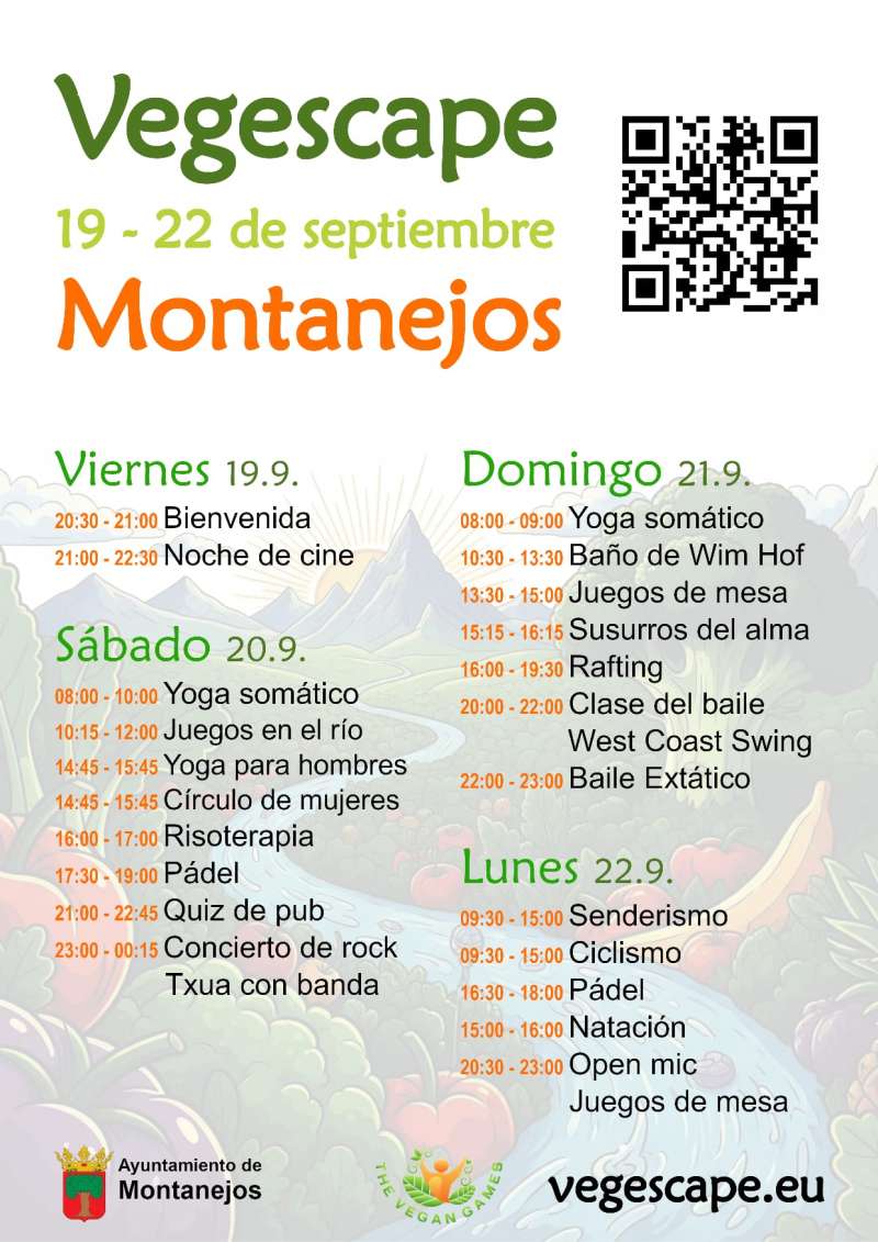 Montanejos será el escenario, del 19 al 22 de septiembre, de Vegescape, un encuentro internacional que combina actividades de bienestar, deporte y convivencia en plena naturaleza. Tras su edición piloto en Benicà ssim el año pasado, el evento se traslada ahora al entorno de Montanejos, un espacio natural que se adapta a la perfección a la filosofÃa del evento.