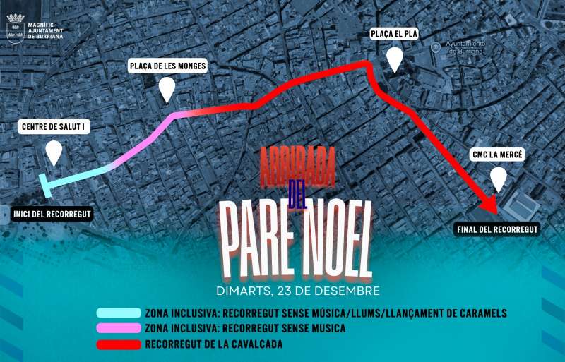 Por la tarde, a las 18:30 horas, se celebrará la llegada oficial de Papá Noel, que partirá desde la Plaza de les Monges y recorrerá las calles de la ciudad hasta el Centre Municipal de Cultura La Mercé. Santa Claus desfilará en su gran trineo iluminado, acompañado de sus elfos y personajes navideños, llenando la ciudad de fiesta e ilusión.