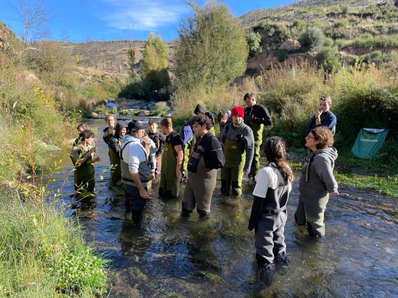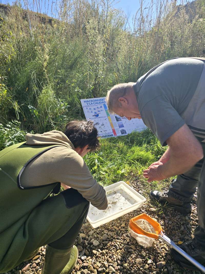 Durante la jornada, los estudiantes observaron de primera mano los trabajos de eliminación de la caña invasora Arundo donax, una especie que amenaza el equilibrio natural del cauce. Además, exploraron la vida que late dentro y fuera del río: desde pequeños macroinvertebrados hasta la vegetación del bosque de ribera que da cobijo a multitud de especies.