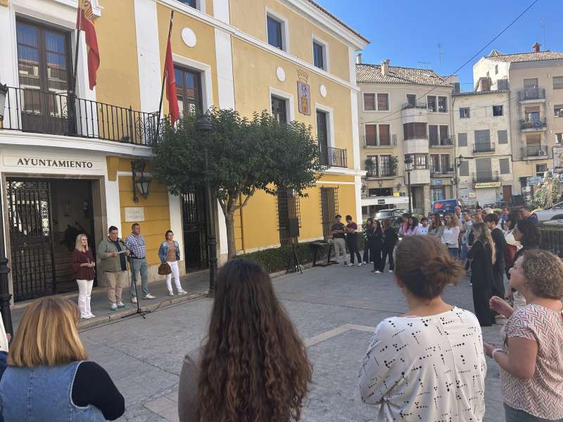 Concentración en el ayuntamiento. EPDALa plaza del Agua Limpia ha sido punto de encuentro para la celebración del Día Mundial de la Salud Mental en Segorbe, donde se ha dado voz a un manifiesto que en la ciudad se ha acompañado de talleres y aproximaciones al estudiantado en torno a la salud mental.
