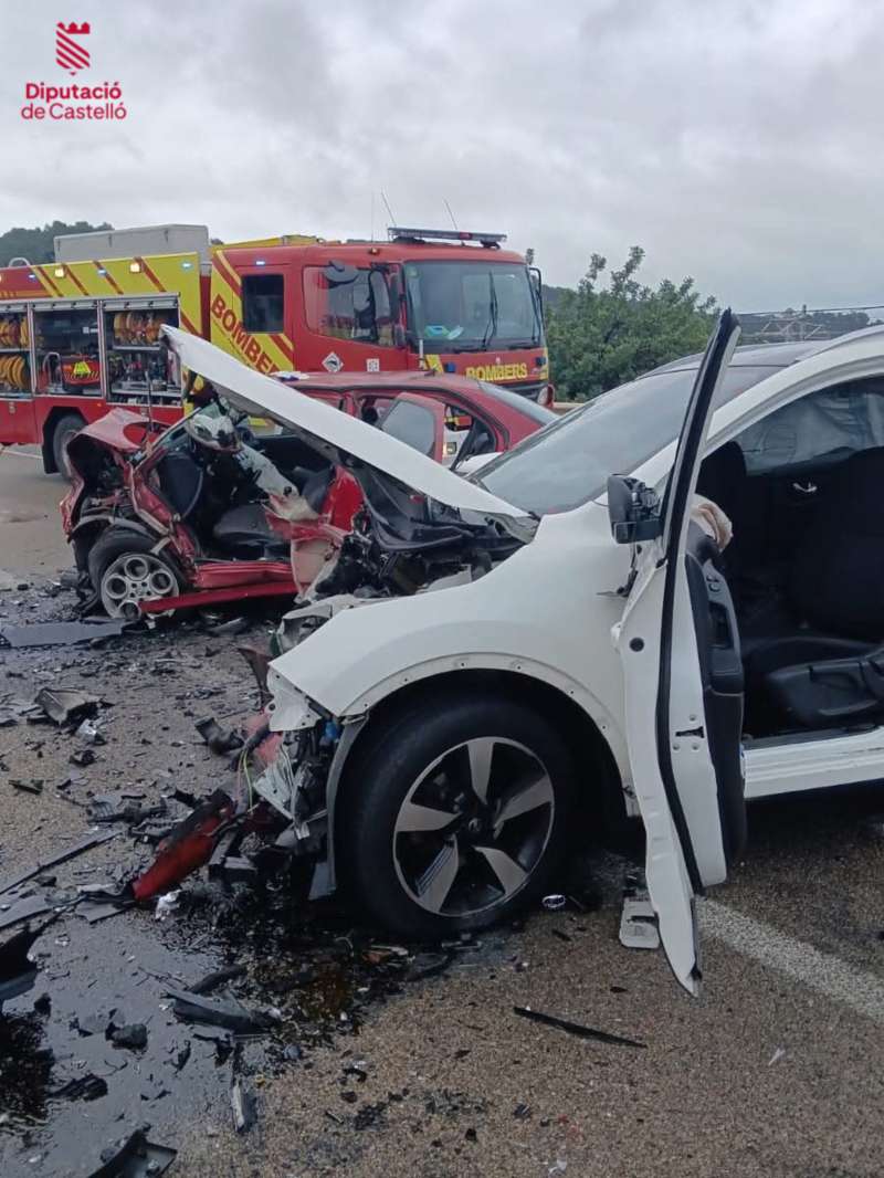 Los bomberos excarcelan a dos ocupantes de cado uno de los turismos implicados en el accidente